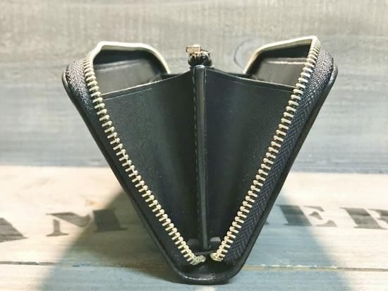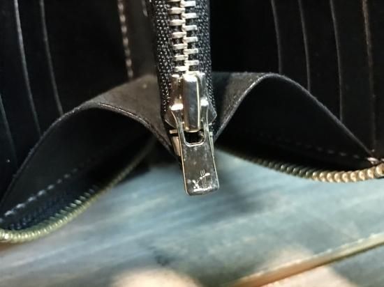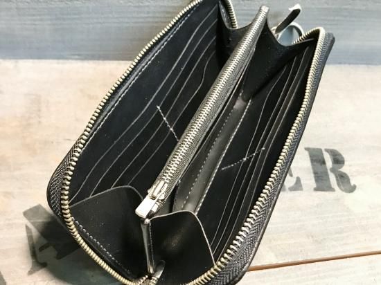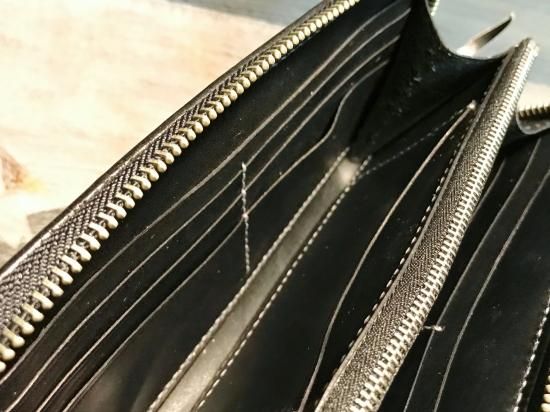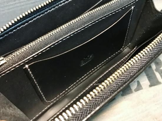 内側は豊富な収納スペースで、カードやお札、レシート等を選別して収納出来、使用し易さ、使い勝手も良く、素材全ての良さが現れた、オーダーならではの組み合わせのラウンドジップウォレットに完成しました。