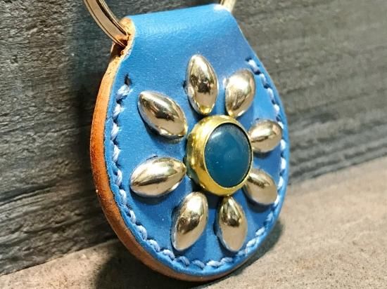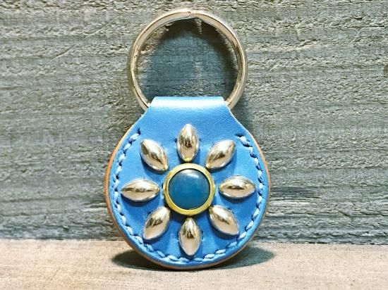 スタッズもくすみ、味わいの出るキーホルダーです。