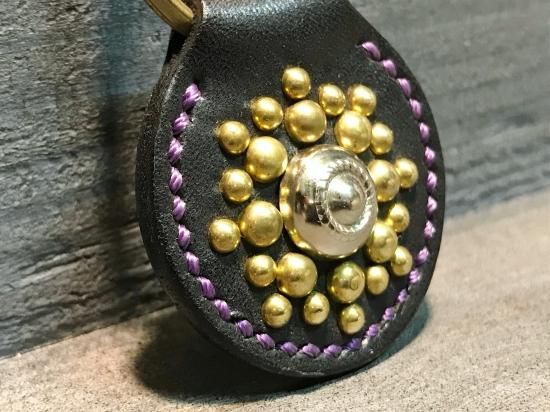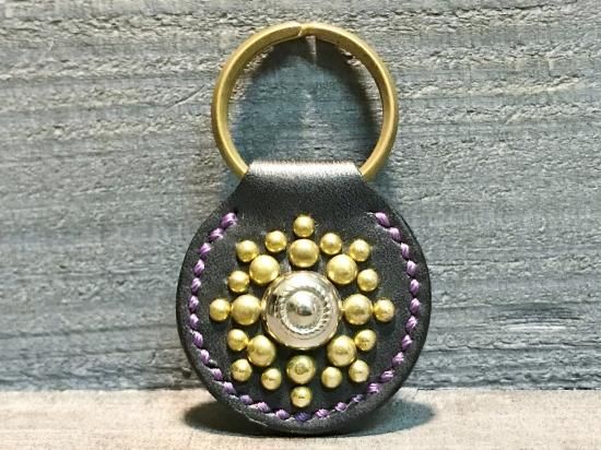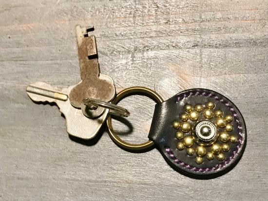 スタッズもくすみ、味わいの出るキーホルダーです。