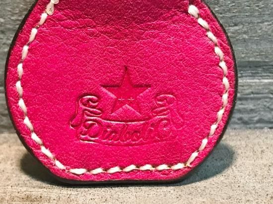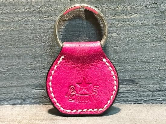 ピンクに手染めを施したサドルレザーを使用したキーホルダー。