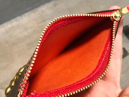 サドルレザーを使用し、ZIPの帯、内側は赤、表側にフラワースタッズをセット。とのご注文。