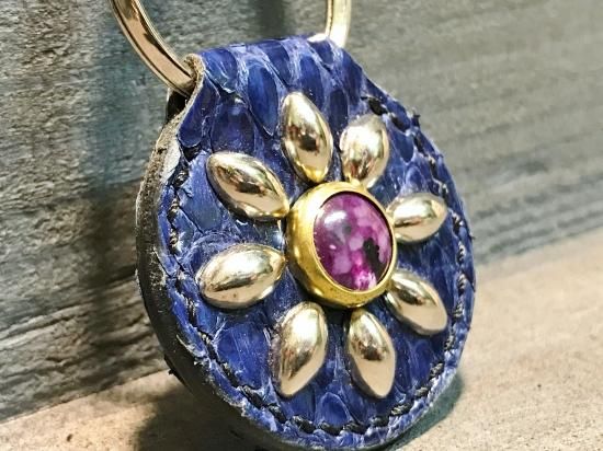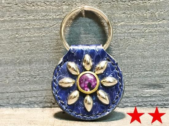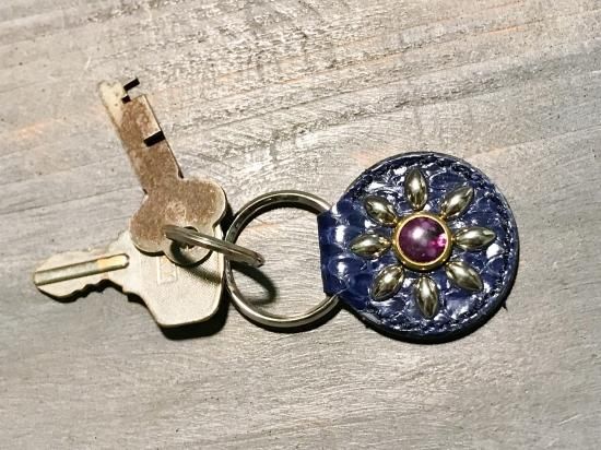スタッズもくすみ、味わいの出るキーホルダーです。