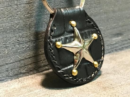 ■商品名:スタッズキーホルダー/サドルレザー・クロコダイル(型押し)