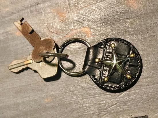 スタッズもくすみ、味わいの出るキーホルダーです。