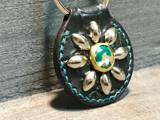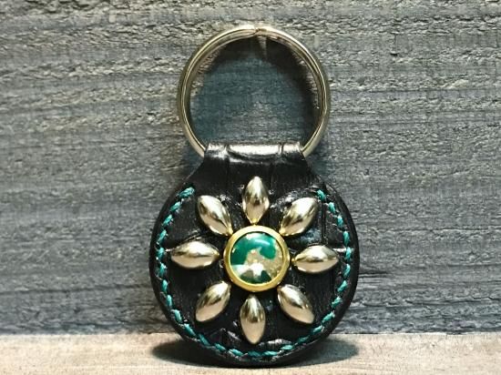スタッズもくすみ、味わいの出るキーホルダーです。