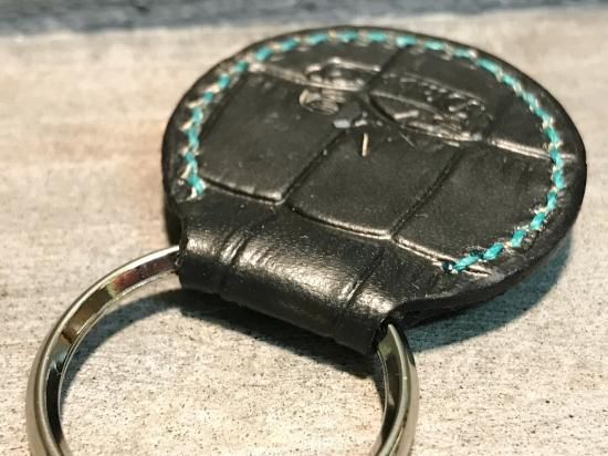 サドルレザーにクロコダイルの模様をエンボス(型押し)を使用したキーホルダー。