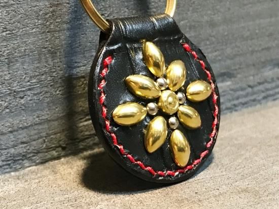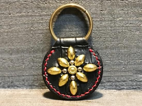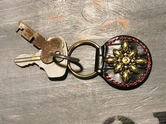 スタッズもくすみ、味わいの出るキーホルダーです。