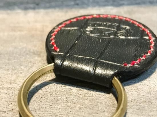 サドルレザーにクロコダイルの模様をエンボス(型押し)を使用したキーホルダー。