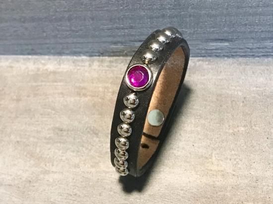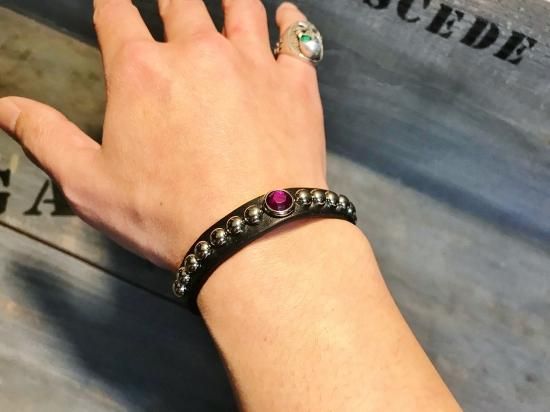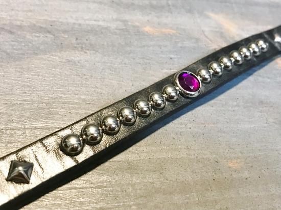 サドルレザーを使用し、シンプルにスタッズをセットしたスタッズブレスレット。