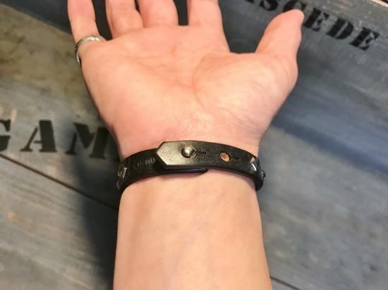 1.3cm幅ですので手首の圧迫感も無く、腕時計やシルバーバングル等されている方でも、重ね付けに。2つのホールが御座いますので、男性には18.0cm、女性は16.5cmで合せて欲しいブレスレットです。