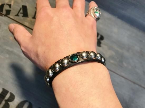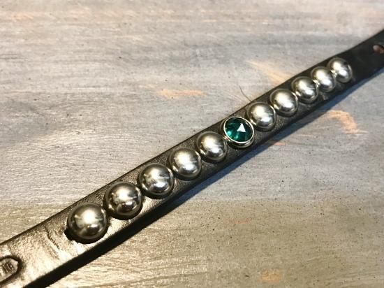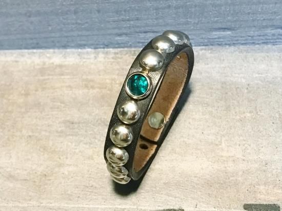 サドルレザーを使用し、シンプルにスタッズをセットしたスタッズブレスレット。