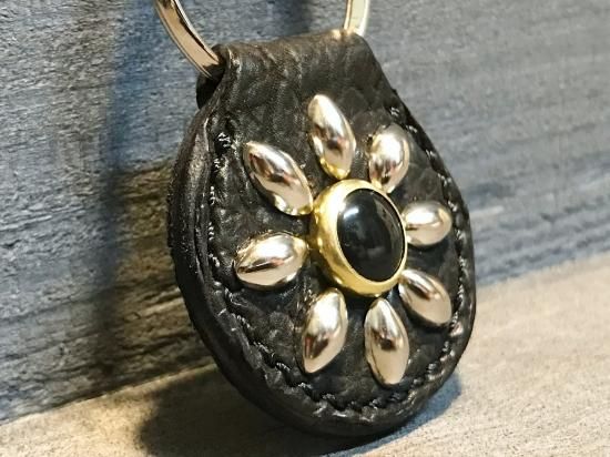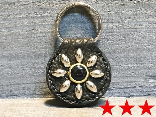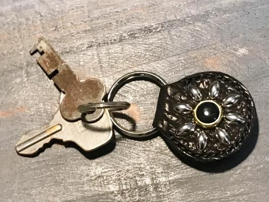 スタッズもくすみ、味わいの出るキーホルダーです。