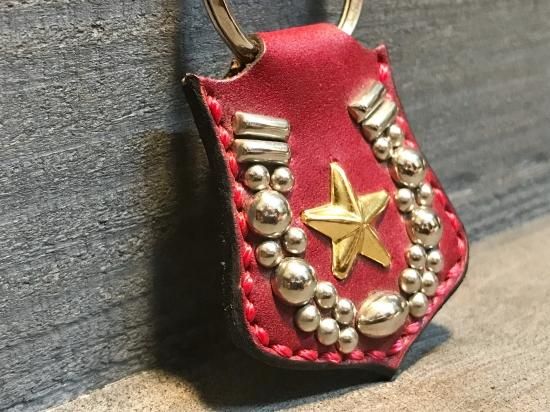■商品名:サドルレザー/スタッズキーホルダー/BLACK