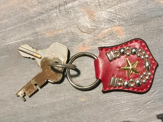 スタッズもくすみ、味わいの出るキーホルダーです。