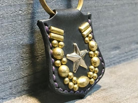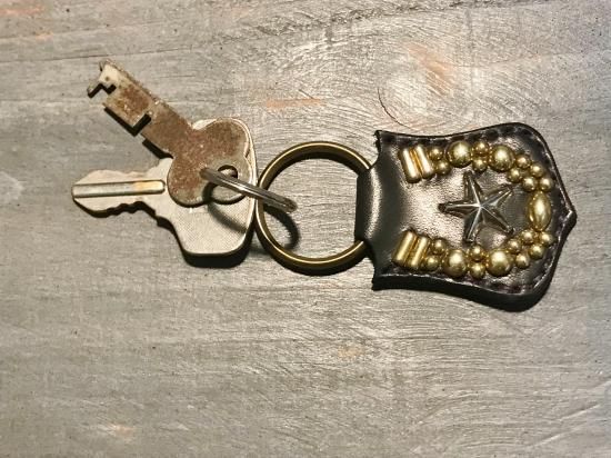 スタッズもくすみ、味わいの出るキーホルダーです。