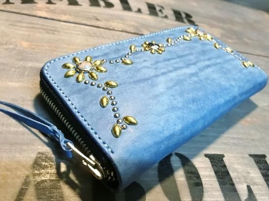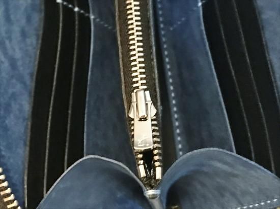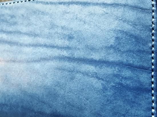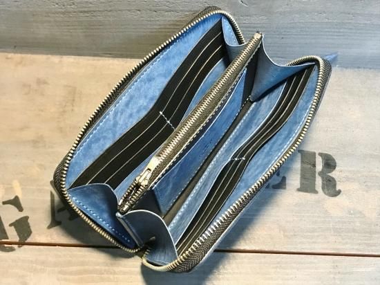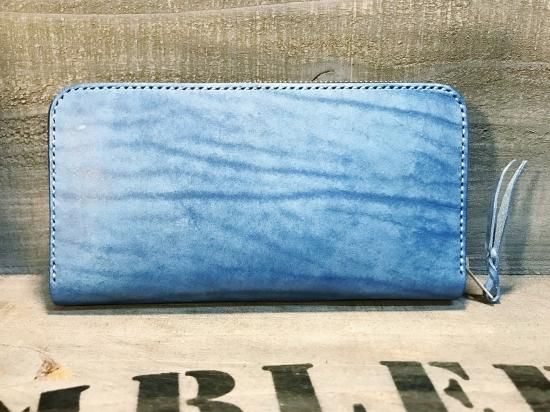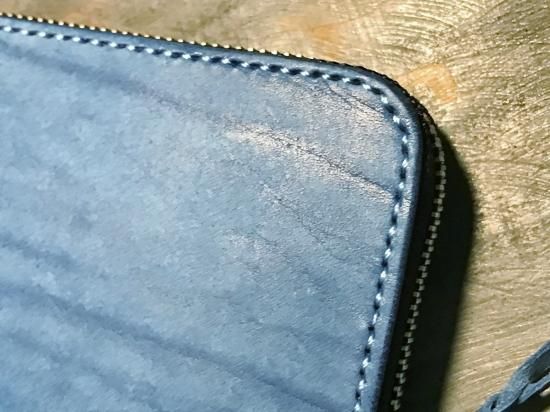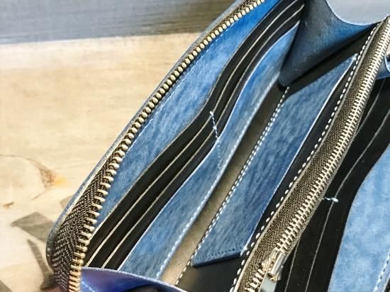 ショルダーレザー(BLUE)を使用したラウンドジップウォレットのオーダーを頂きました。