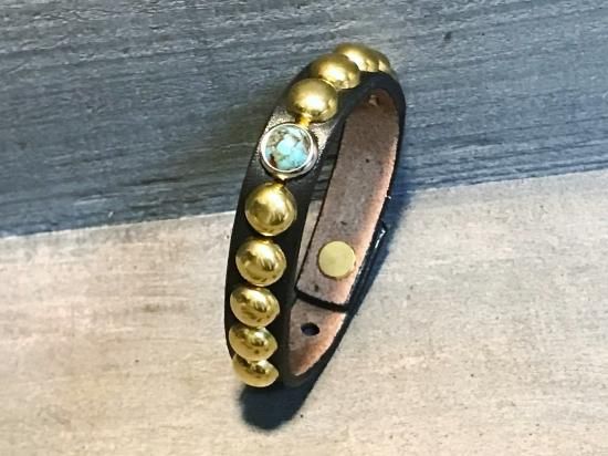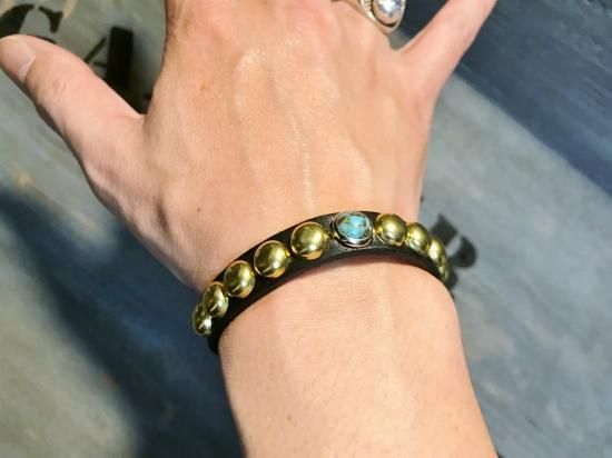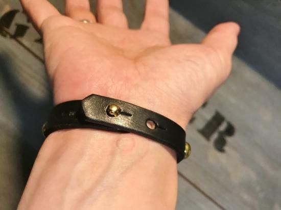 サドルレザーを使用し、シンプルにスタッズをセットしたスタッズブレスレット。