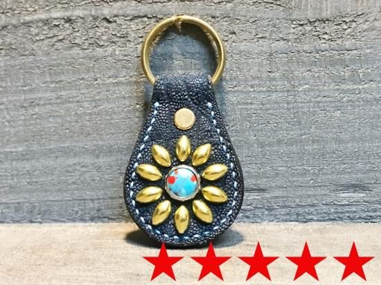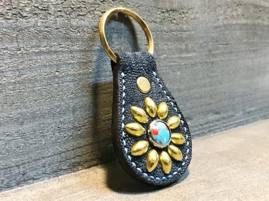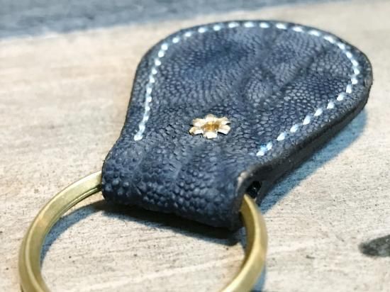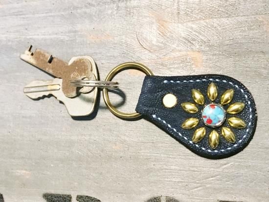 スタッズもくすみ、味わいの出るキーホルダーです。