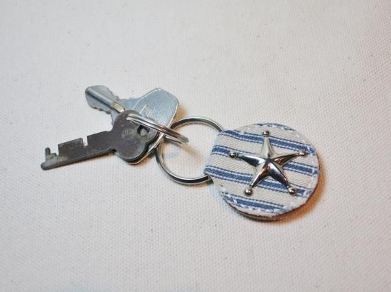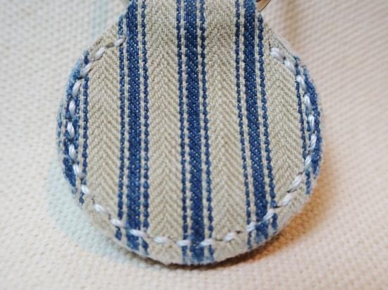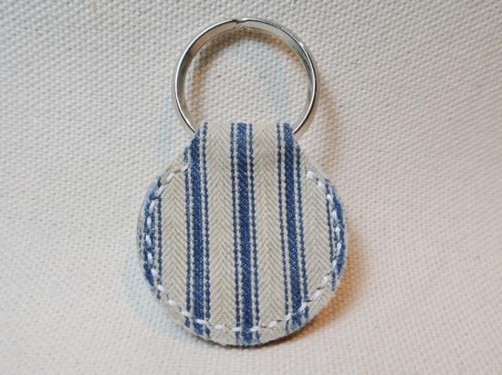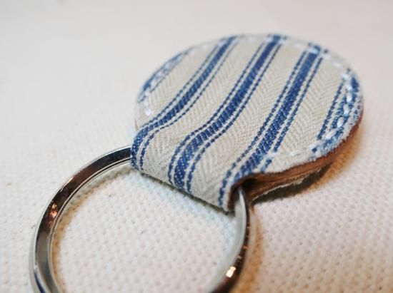 1900's〜1920'sアンティークティッキング生地を使用したスタッズキーホルダー。