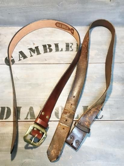 新品時の画像が無く、新たにオーダー頂き製作したベルトと並べて掲載します。