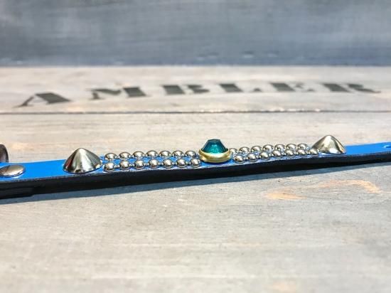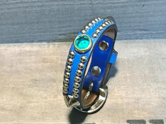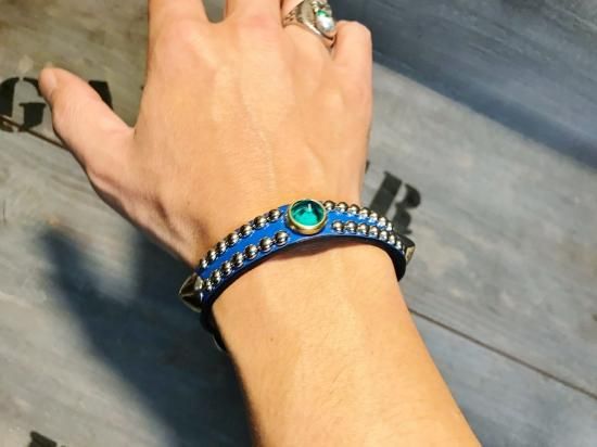 ■商品名:スタッズブレスレット/サドルレザー・BLUE