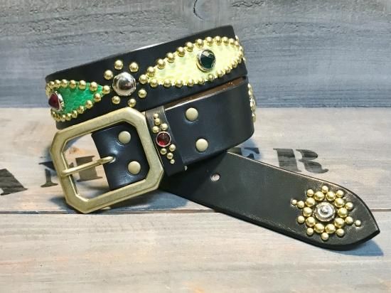 ■商品名:スタッズベルト/サドルレザー/コブラ革