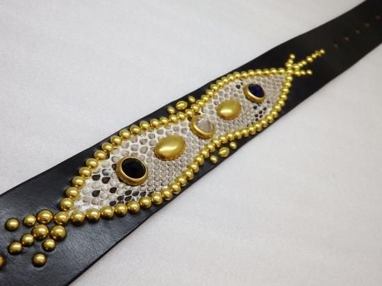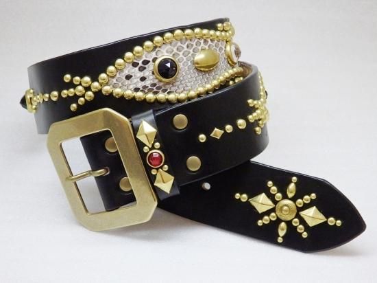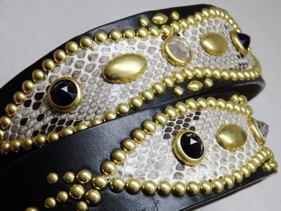 ■商品名:スタッズベルト/UKサドルレザー/ダイヤモンドパイソン/オーダー品