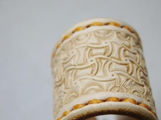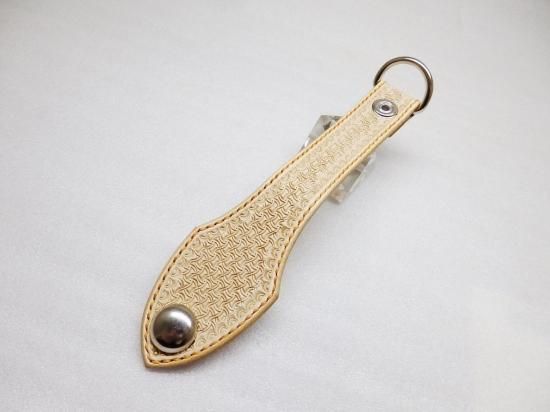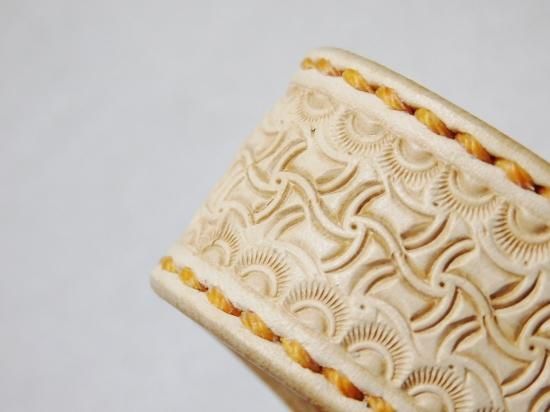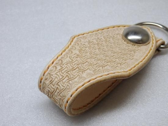 ジオメトリックスタンプを施したベルトキーループのオーダーを頂きました。