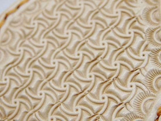 ジオメトリックスタンプを打ち込み、使い込む程に飴色へ変わる経年変化を楽しみたい。との事で