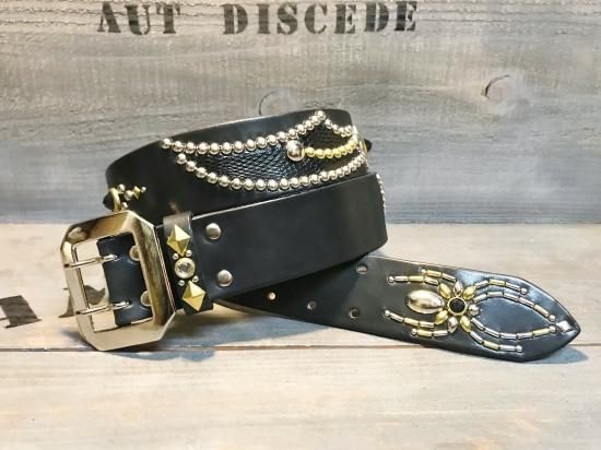 DIABOLICを代表する蜘蛛を剣先にセットしたスパイダースタッズベルト。