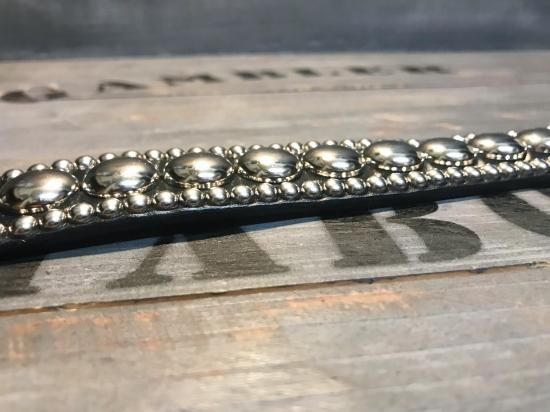 サドルレザーを使用し、ヴィンテージにあるスタッズの打ち方を施したスタッズベルトです。