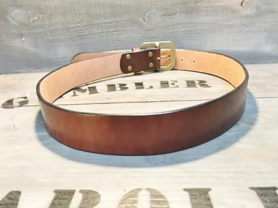 シンプルさと革の良さが良く出ており、さらに使い込む程に艶が増して行くベルトに完成しました。
