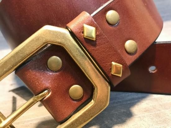 お客様のサイズで、幅40mm、装飾無しで、サル革部分にだけスタッズをセット。