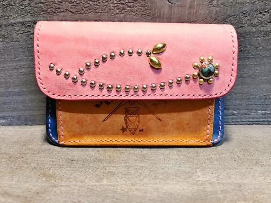 ■商品名:コインケース/ショルダーレザー・マルチカラー/フラワースタッズ/オーダー品