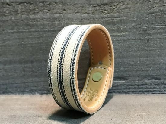 ■商品名:レザーブレスレット/アンティークティッキング生地/オーダー品