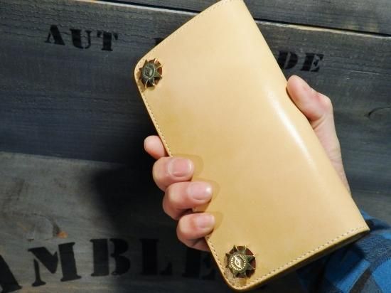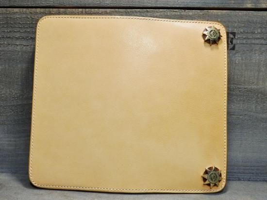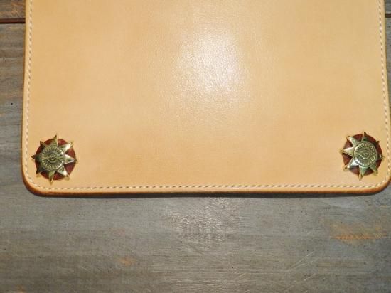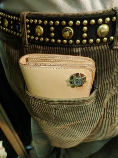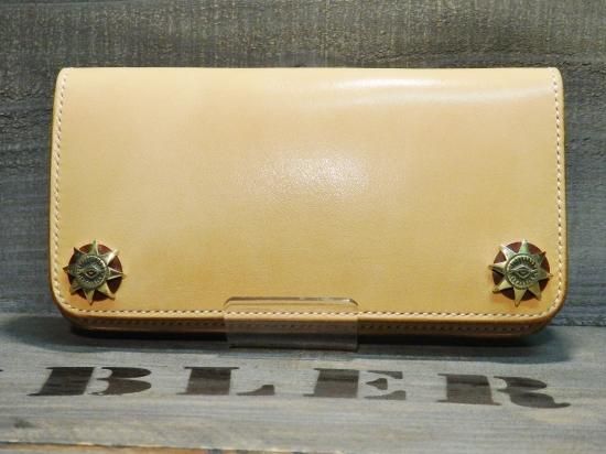 サドルレザーを使用し、カスタムパーツの8ポイントスターをセットしたプレーンウォレット。
