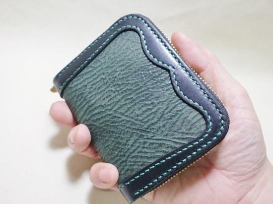 シャークスキン(サメ革)を使用したラウンドジップコインケース。
