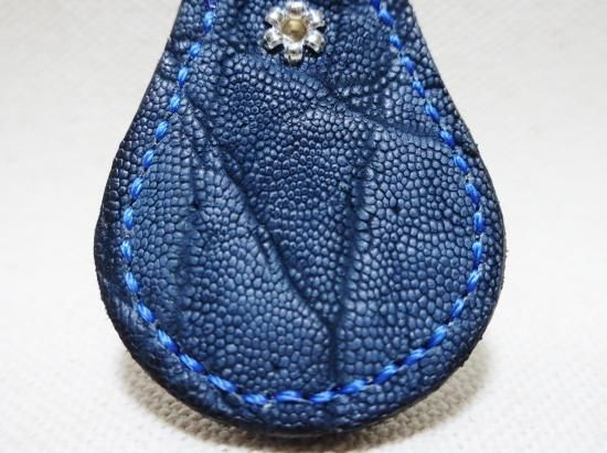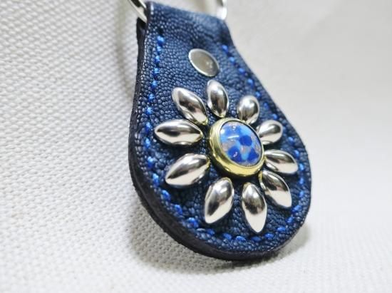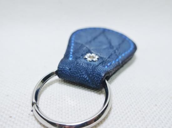 ゾウ革を使用したスタッズキーホルダー。