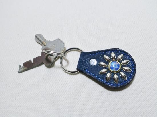 スタッズもくすみ、味わいの出るキーホルダーです。