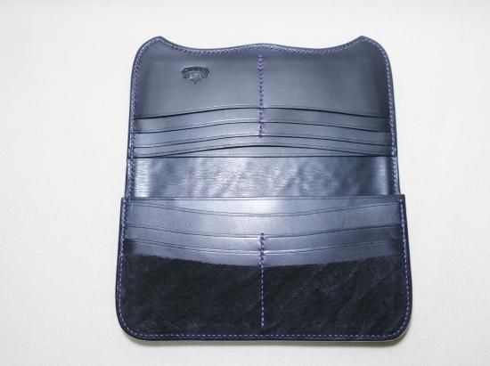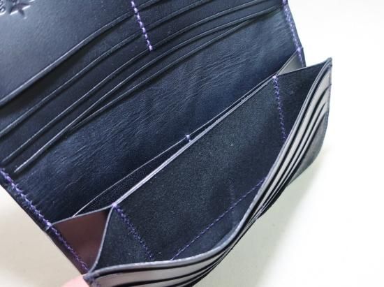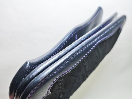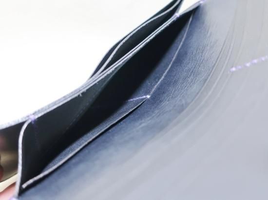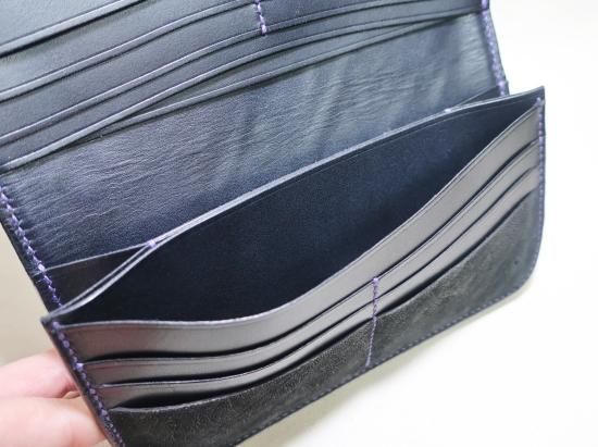 内側は、小銭入れを無くし札入れとカード入れのみ。素材全ての良さが現れ、オーダーならではの組み合わせで綺麗で高級なウォレットに完成しました。