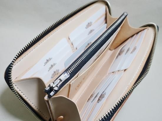 小銭入れのZIPはエクセラジップを使用し、表のZIPは、1930〜1950年代のジッパーをリアルに復刻した拘りのZIPで、