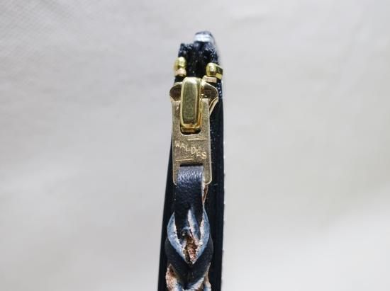 革はサドルレザーの黒、ステッチは白、ジップのテープ色を黒で引手は金色。