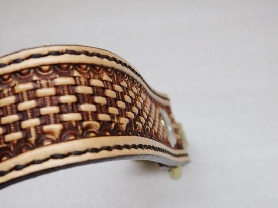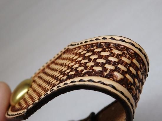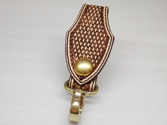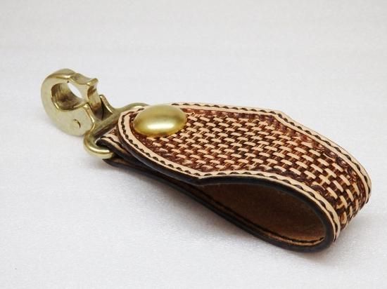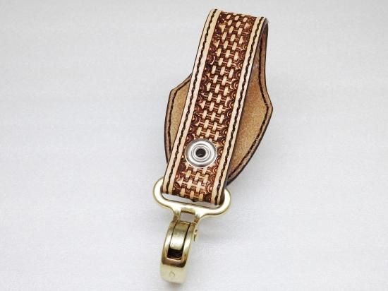 丁寧に打ち込まれたスタンプの彫りが深く存在感があり、堅牢な革に相反して、使い込む程深い味わいが増し、オーダーならではの組み合わで、使い込む程に変わる変化を楽しみながら使用出来るキーループに完成しました。