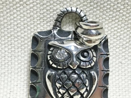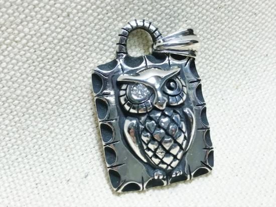 フクロウ/ペンダントトップの右目に石をセットしたオーダーを頂きました。