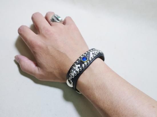 サドルレザーにヘビ革(ダイヤモンドパイソン)をインレイに使用したスタッズブレスレット。