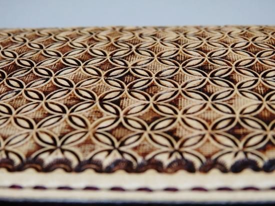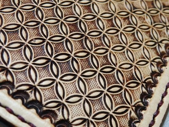ジオメトリックスタンプ(幾何学模様)に、アンティーク加工。刻印の凹凸がはっきり分かり、使い込む程色合いも変わって行く変化を楽しめ、
