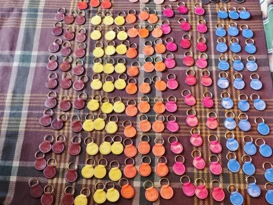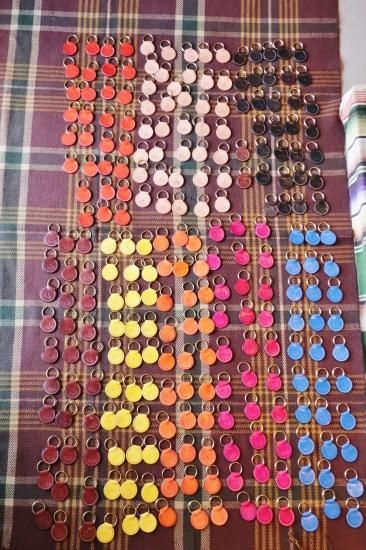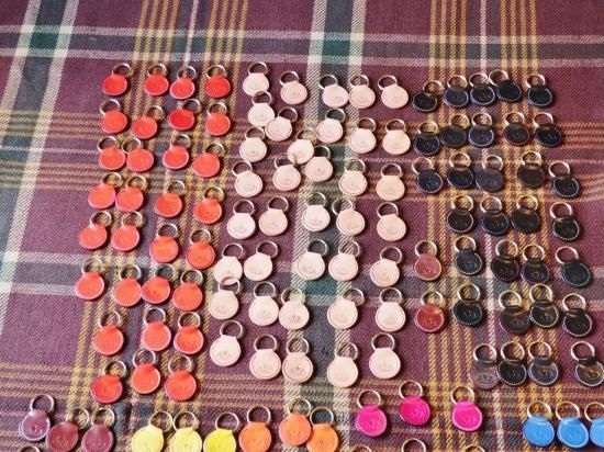 革はサドルレザーを使用し、スタッズ等無しで、手染め(紫、ピンク、緑、オレンジ、青、黄色)、糸の色を変えてアソートで、BirthlanDのロゴを刻印。
