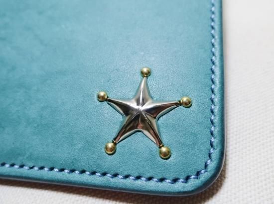 ハトメをセットし、星のスタッズは銀色(ニッケル)。糸の色はお任せ。と細かい詳細を頂き製作。