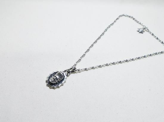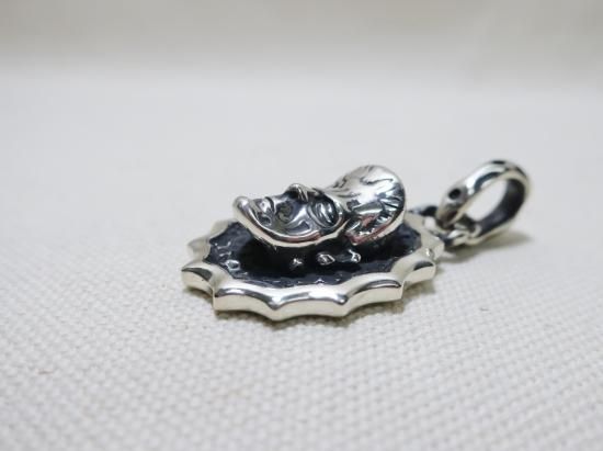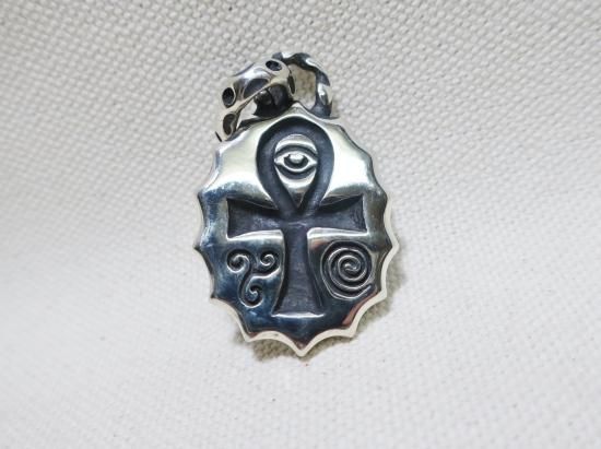 土台はアンク十字架/万能の目、デビル、スパイラルと月の力の象徴とするトリプルスパイラルを合わせたペンダントトップで、無骨な雰囲気と独特の匂いを醸し出し、使う程、傷やくすみが出て来て独特の経年変化も楽しめるペンダントトップ。