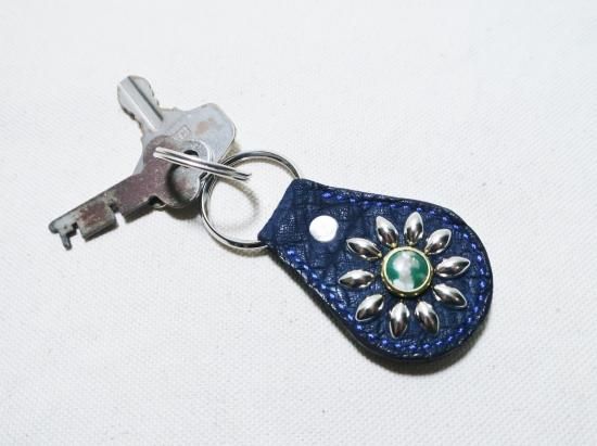 スタッズもくすみ、味わいの出るキーホルダーです。
